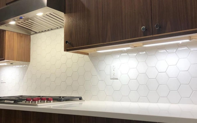 Bellevue Condo Remodel-Arctic White MSI Quartz, paired with a 3" Matte Hexagon hand made tile